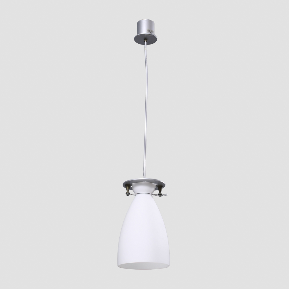 lampada a sospensione mod. Franceschina in metallo verniciato, alluminio, ottone e diffusore in vetro opalino satinato, etichetta della produzione, usure e difetti.