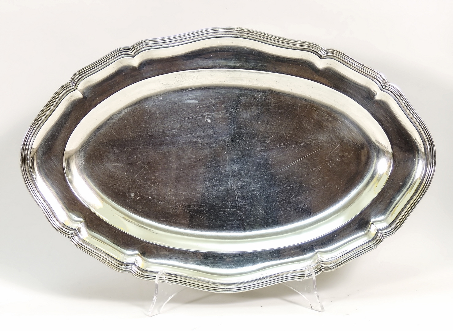 VASSOIO OVALE IN ARGENTO - OVAL SILVER TRAY bordo mosso gr 1065