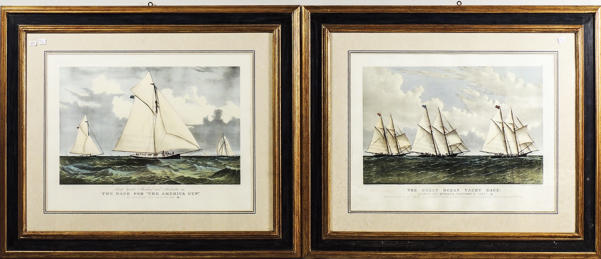 REGATE VELICHE - YACHT RACES coppia di litografie - a pair of lithographs, in cornice cm 47x64