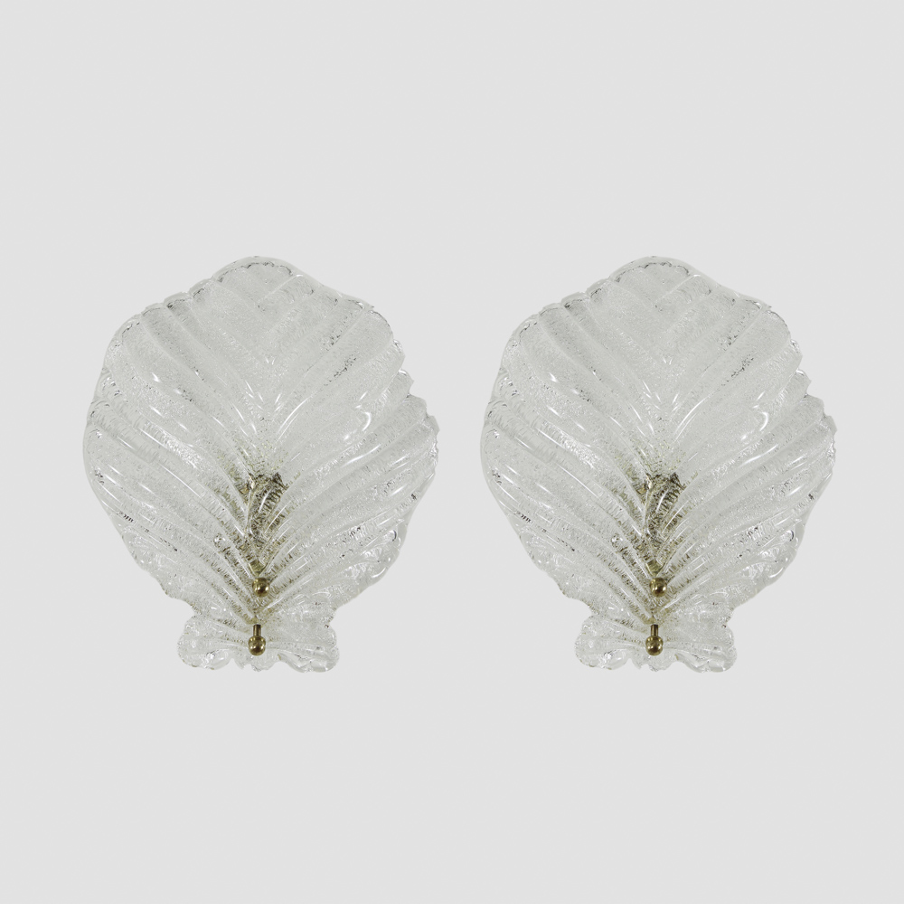 coppia di lampade da parete in vetro ed ottone