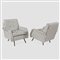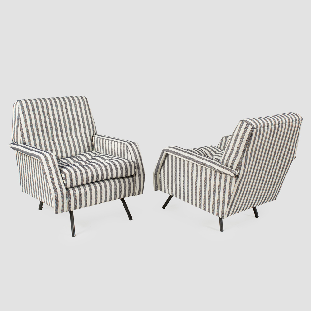 coppia di poltrone in metallo verniciato e tessuto imbottito