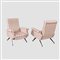 coppia di poltrone reclinabili in metallo verniciato, ottone e tessuto imbottito