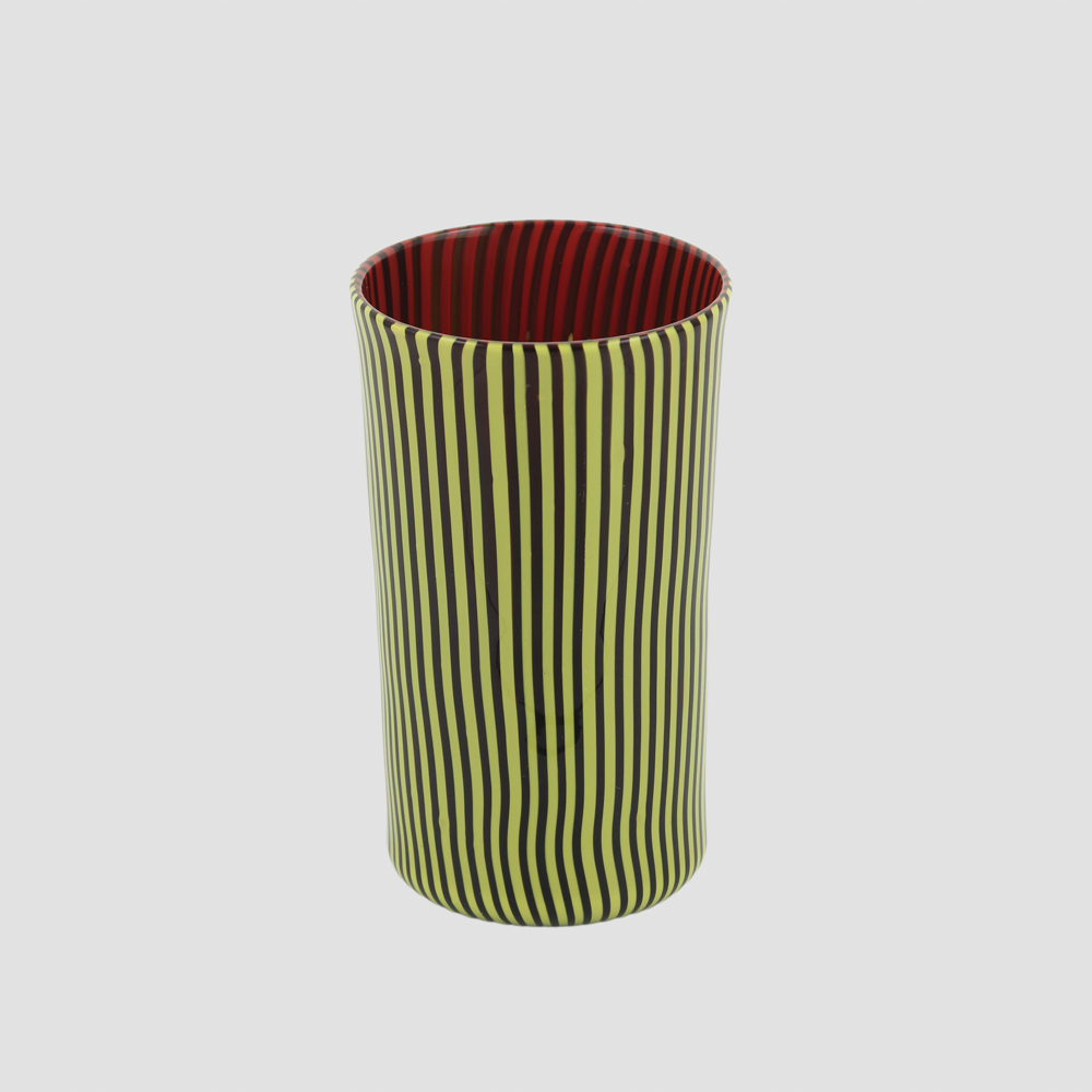 vaso in vetro tessuto doppio con canne a colori alterni, firma all'acido