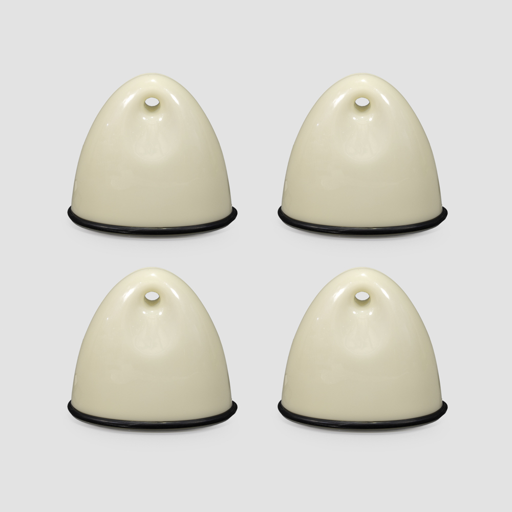 quattro lampade da tavolo mod. Lalea in ABS e gomma nera, marchio della produzione