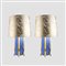 coppia di lampade da tavolo in ottone e vetro colorato, complete di paralume