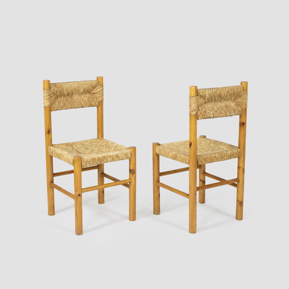 quattro sedie in legno e paglia, lievi usure