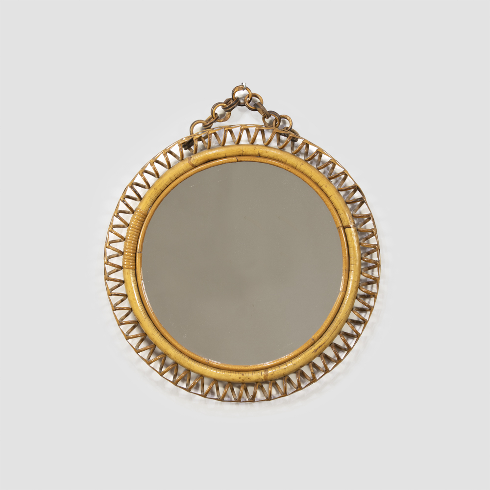 specchio da parete in vetro specchiato, rattan, midollino e bambù