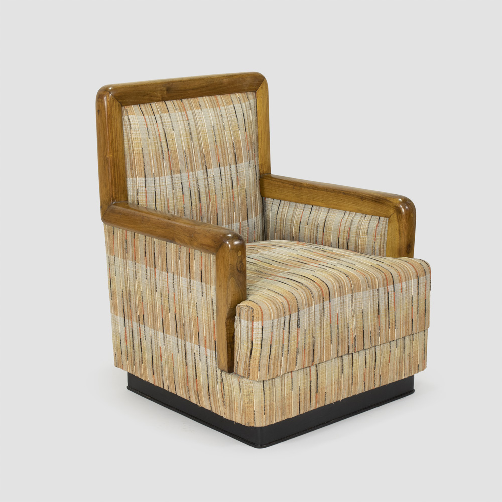poltrona Decò in legno naturale, dipinto e tessuto imbottito