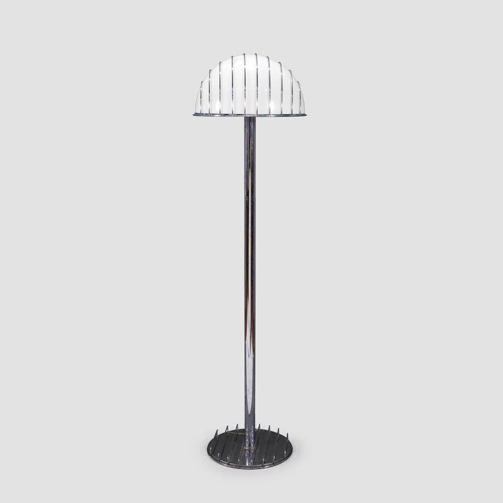 lampada da terra mod. Griglia in metallo cromato e perspex