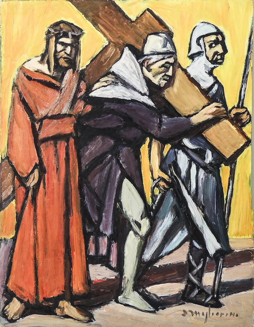 DINO MIGLIORINI (1907-2005) Salita al Calvario - The Way to Calvary olio su faesite - oil on faesite, firmato cm 64x49