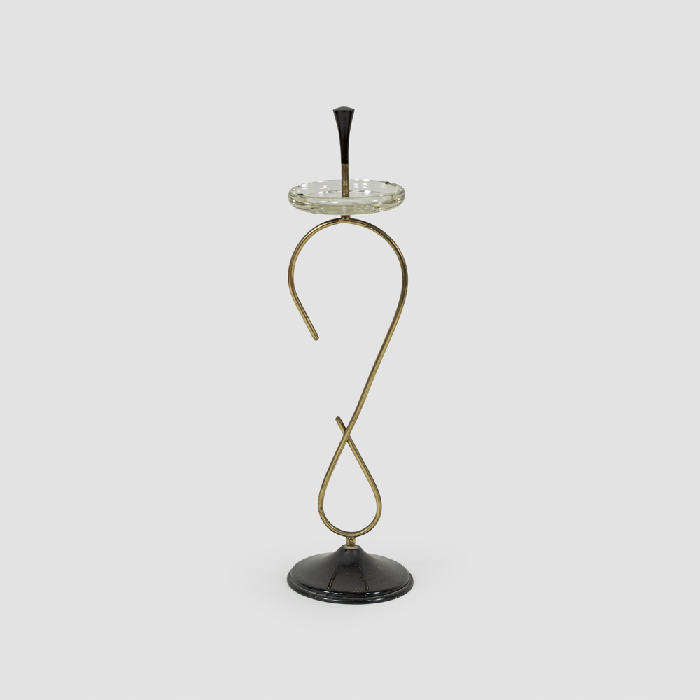 posacenere in metallo verniciato, ottone e vetro trasparente