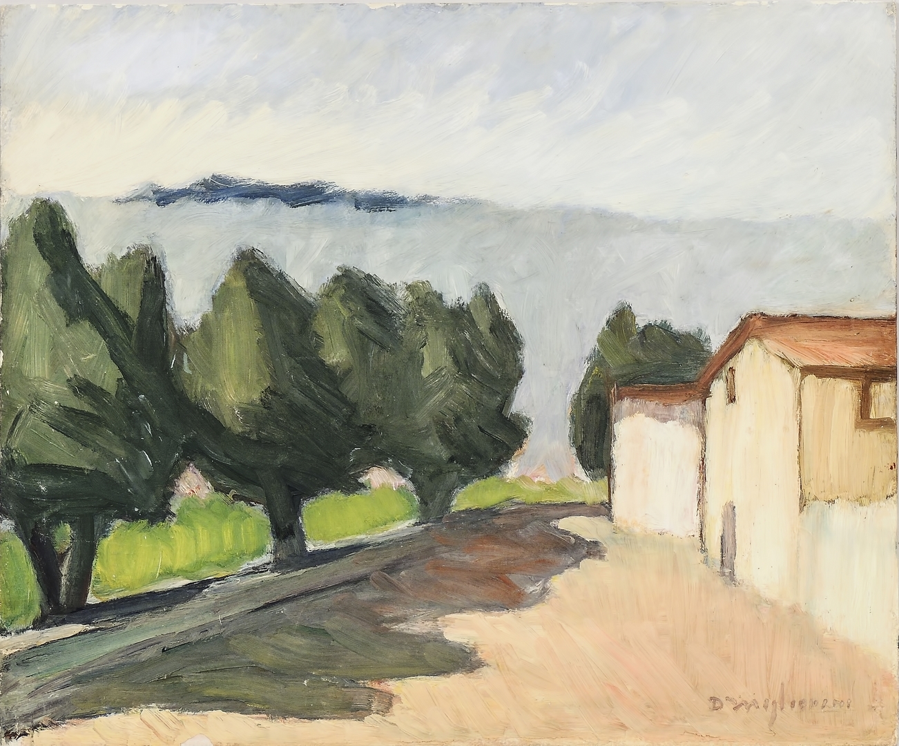 DINO MIGLIORINI (1907-2005) Veduta di strada di campagna - View of a Country Road olio su cartone telato - oil on canvas board, firmato cm 50x60