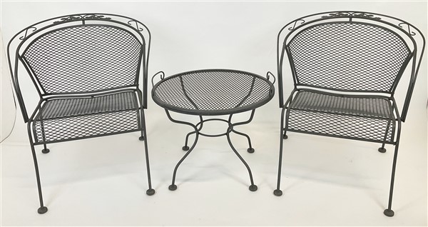 Lotto 727 | Set da giardino composto da due poltrone e un tavolino in metallo verniciato gr