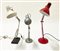 Gruppo di tre lampade da scrivania in metallo verniciato rosso, bianco e cromat