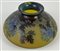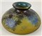 Vaso globulare schiacciato in vetro soffiato cammeo inciso all'acido con decori floreali in giallo, blu e ametista. Francia, inizio secolo XX. (lievi difetti)