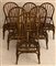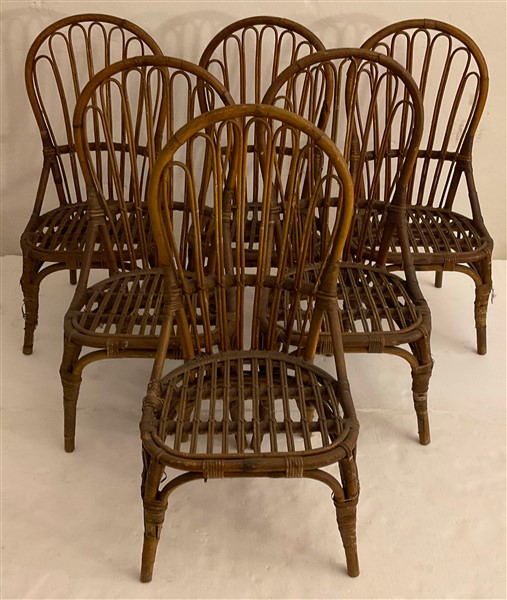 Gruppo di sei sedie da veranda in manao scortecciato e malacca. Italia, anni '60. (cm 48x99x50) (difetti)
