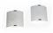 * Coppia di lampade da parete con diffusore in vetro satinato curvato e struttura in metallo verniciato bianco e acciaio. Italia, anni '70. (cm 34x33,5)