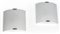 * Coppia di lampade da parete con diffusore in vetro satinato curvato e struttura in metallo verniciato bianco e acciaio. Italia, anni '70. (cm 34x33,5)