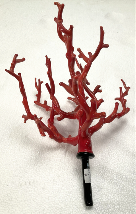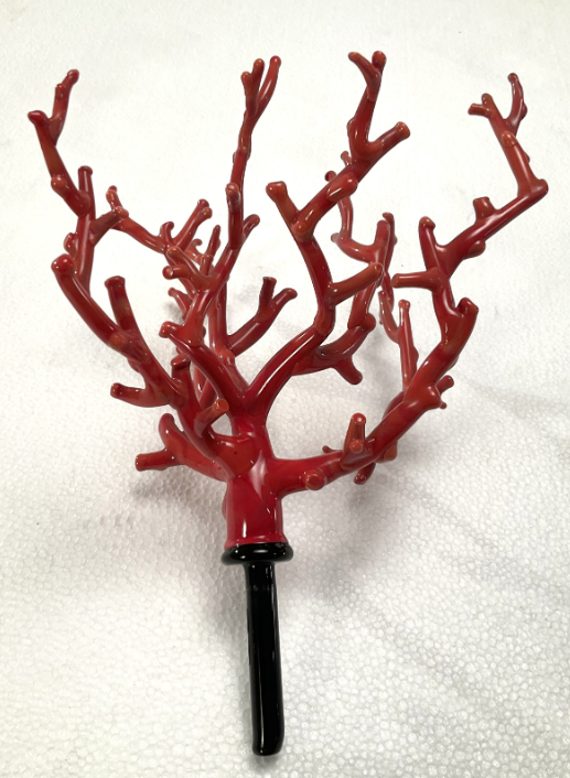 Tappo di boccetta a forma di corallo in vetro soffiato rosso opaco e nero. Secolo XX. (lievi difetti)