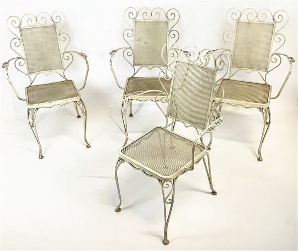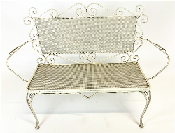 Fornitura da giardino in ferro dipinto bianco composto da divanetto, quattro po