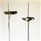 Due lampade da terra modello "DM 333". Produzione O-Luce, Milano, anni '70. Base, struttura e paralume in metallo. (h cm 200) (lievi difetti)