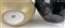 Lotto composto da un vaso in ceramica smaltata in bianco e oro marcata sotto la base "KPM", Berlino e un vaso in vetro soffiato nero. (h max cm 22) (lievi difetti)