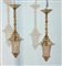 Coppia di lampadarietti a lanterna costolata in vetro soffiato pagliesco trasparente. Anni '30. (difetti)