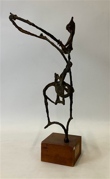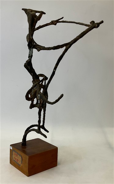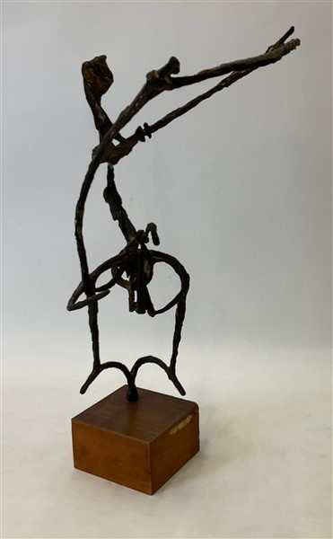 scultura in bronzo su base in legno