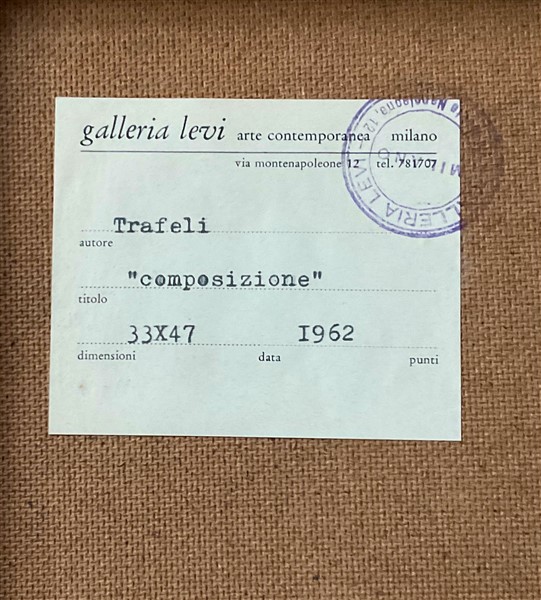 Galleria Levi Arte Contemporanea, Milano (etichette al retro); Collezione privata, Milano