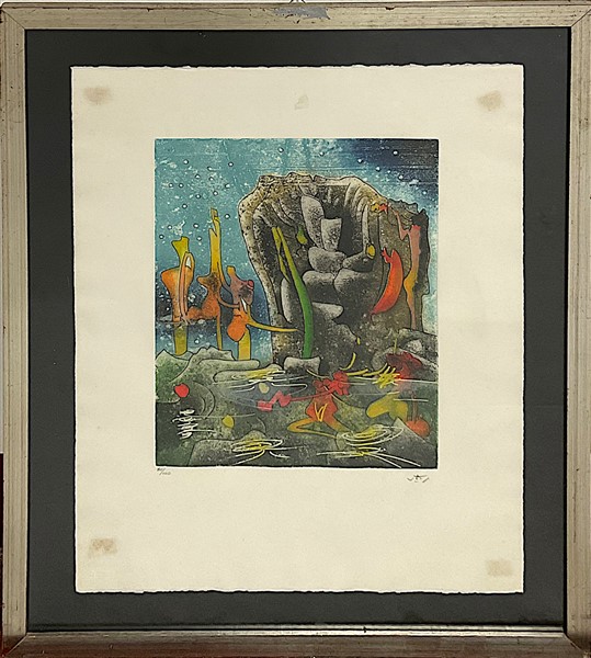 Roberto Matta "Nimphée" 1979 acquaforte e acquatinta a colori (lastra cm 41,5x32