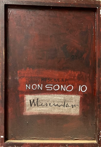 Plinio Mesciulam "Non sono io" acrilico e collage su tavola cm 101x72 Firmata e