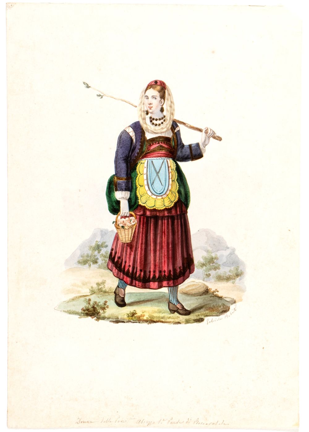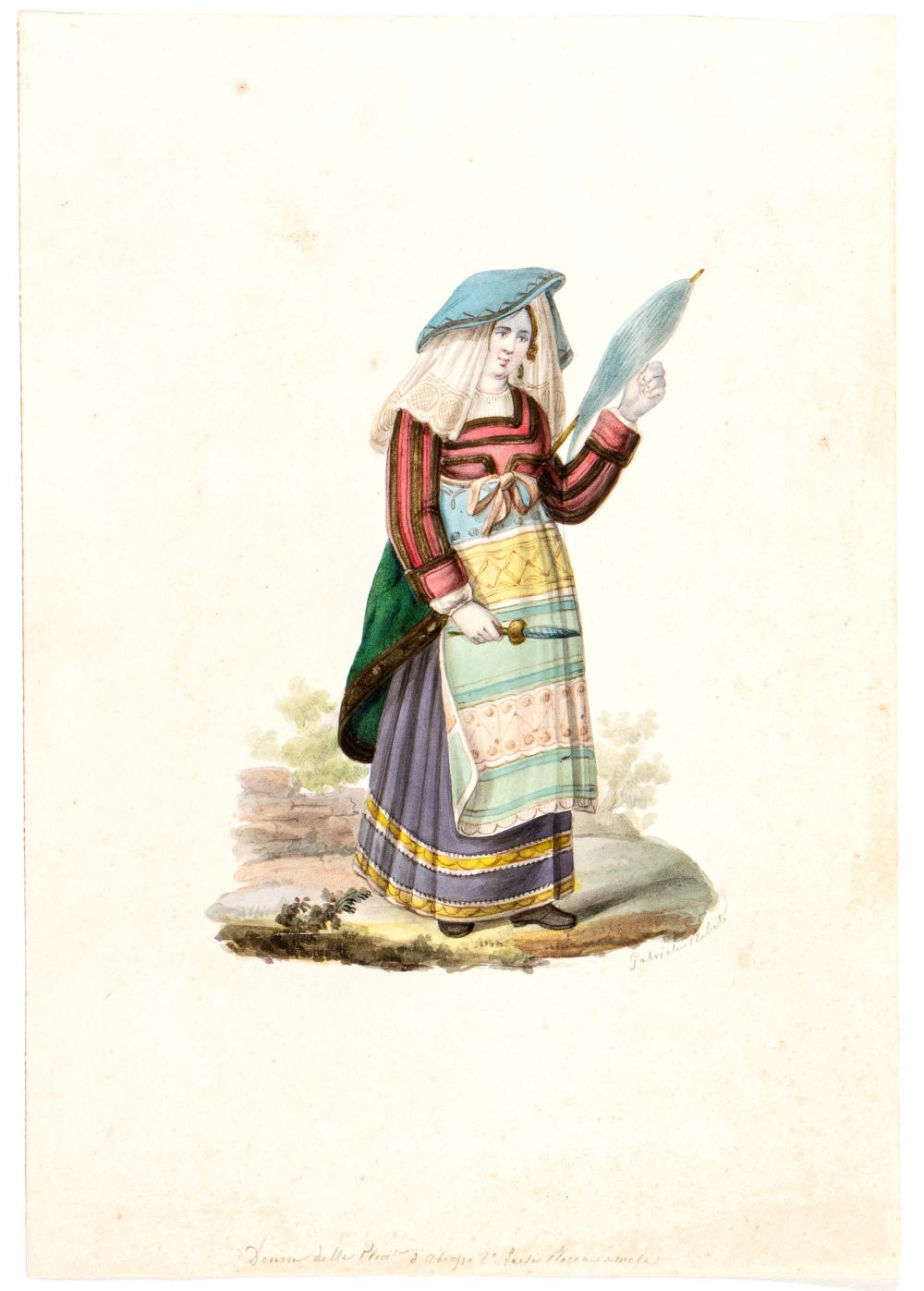 Artista italiano, XIX secolo () a) Donna in abiti tradizionali abruzzesi con...