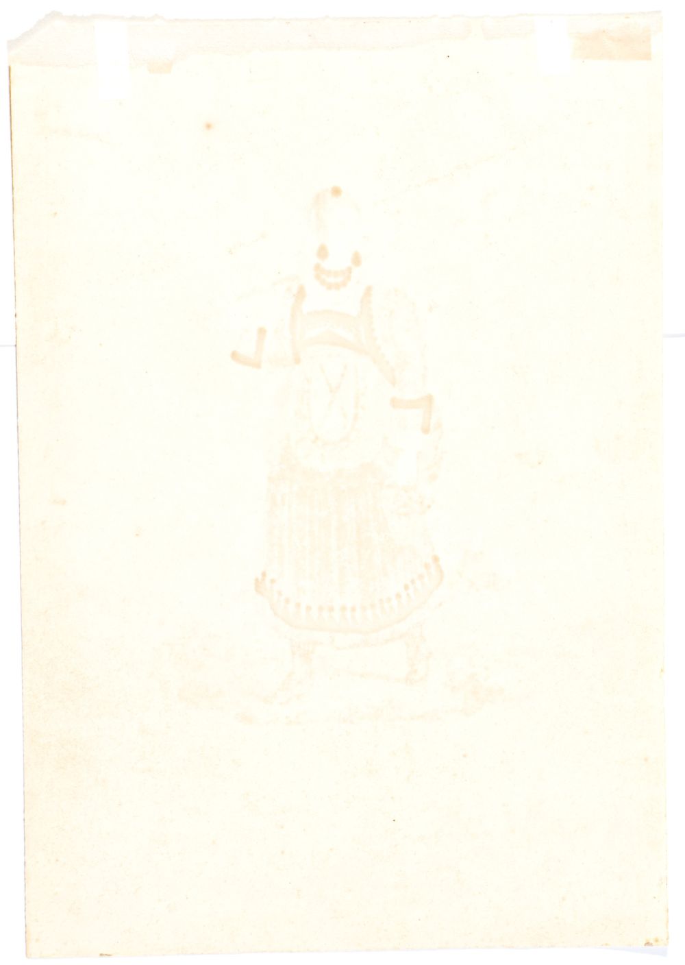a) Donna in abiti tradizionali abruzzesi con cesto di funghi; b) Donna i abiti tradizionali abruzzesi con rocca e fuso. Coppia di disegni