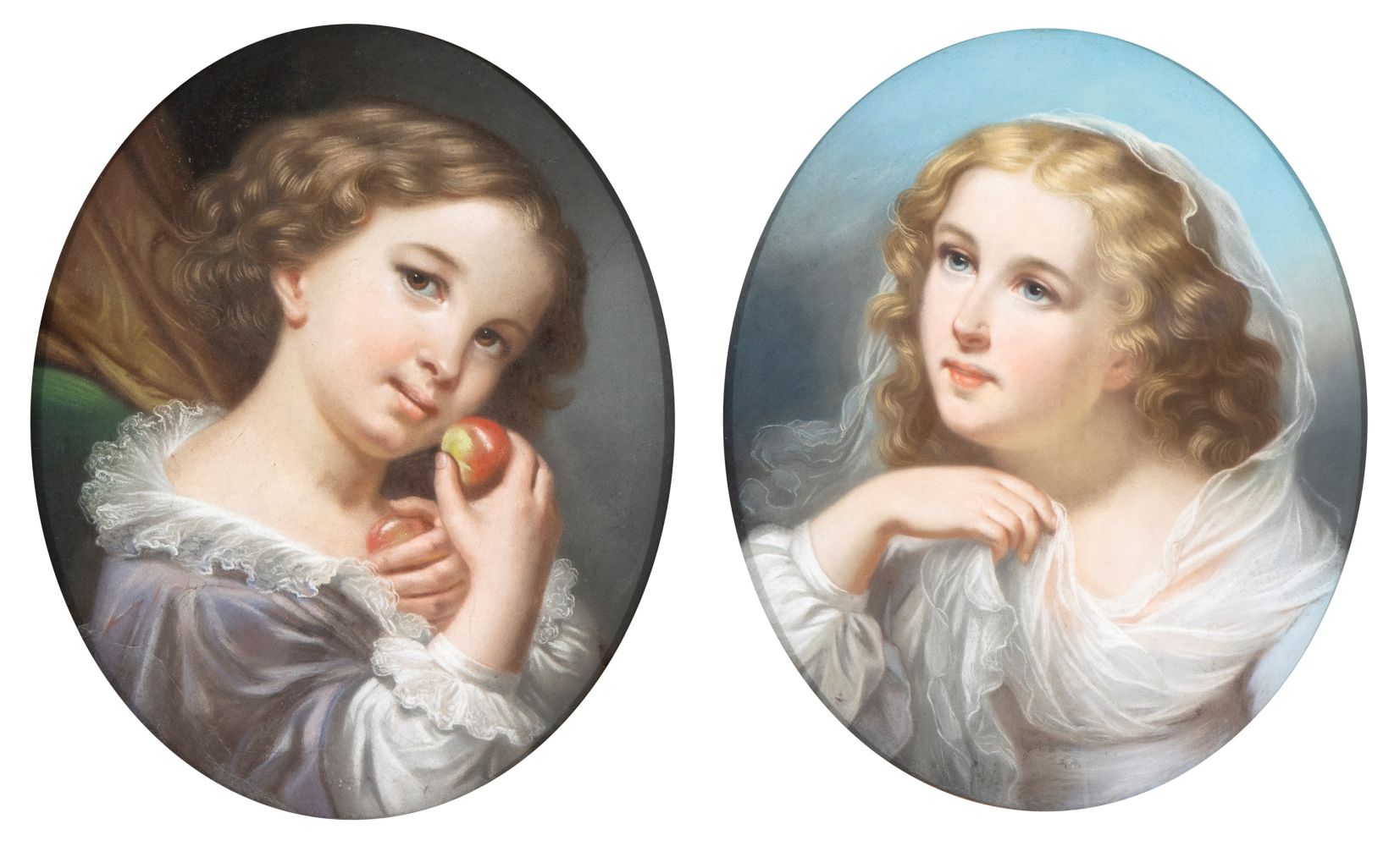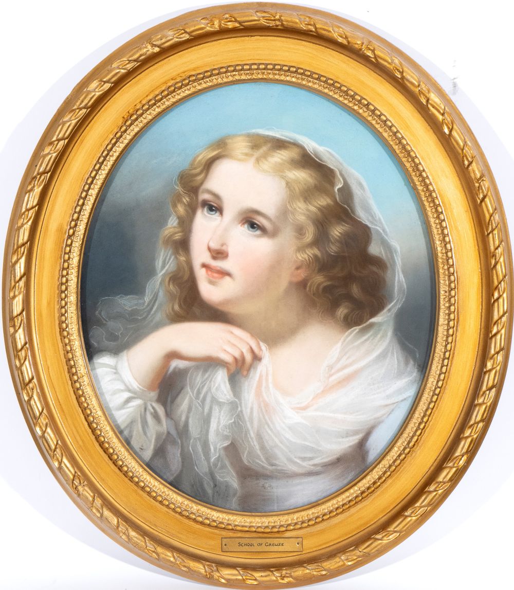 Jean Baptiste Greuze (cerchia di) (Tournus 1725-Parigi 1805) a) Fanciulla con...