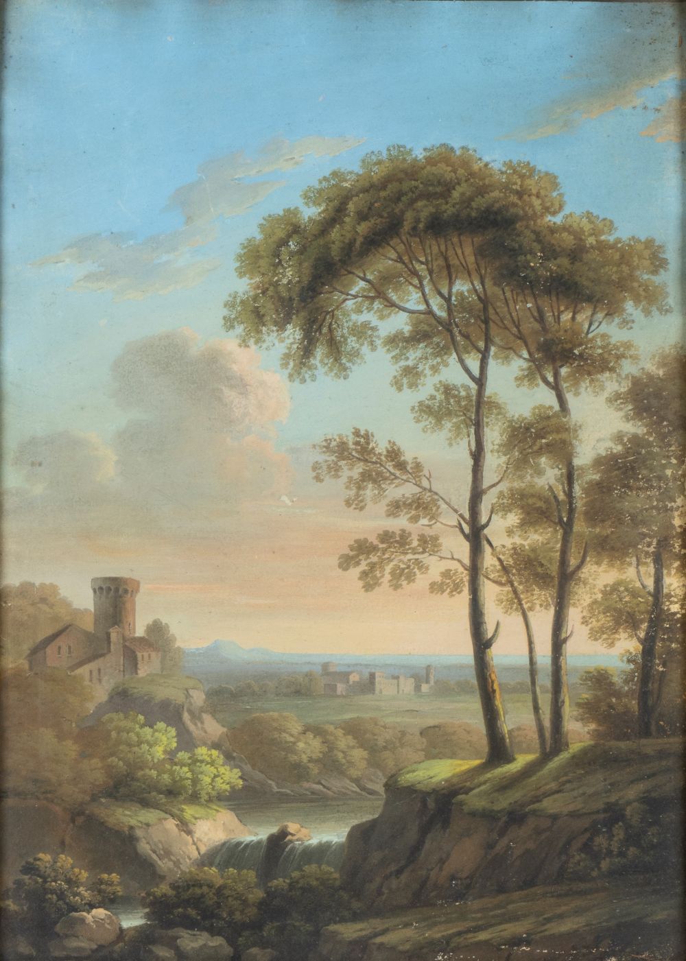 Andrea Locatelli (ambito di) (Roma 1695-Roma 1741) a) Paesaggio con castello...
