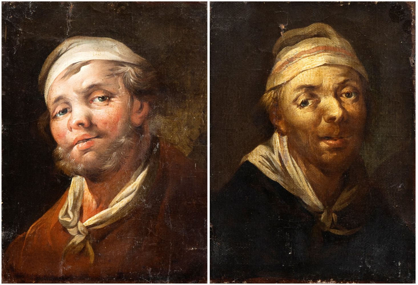 a) Ritratto di uomo con barba; b) Ritratto di uomo con berretto. Coppia di ritratti grotteschi