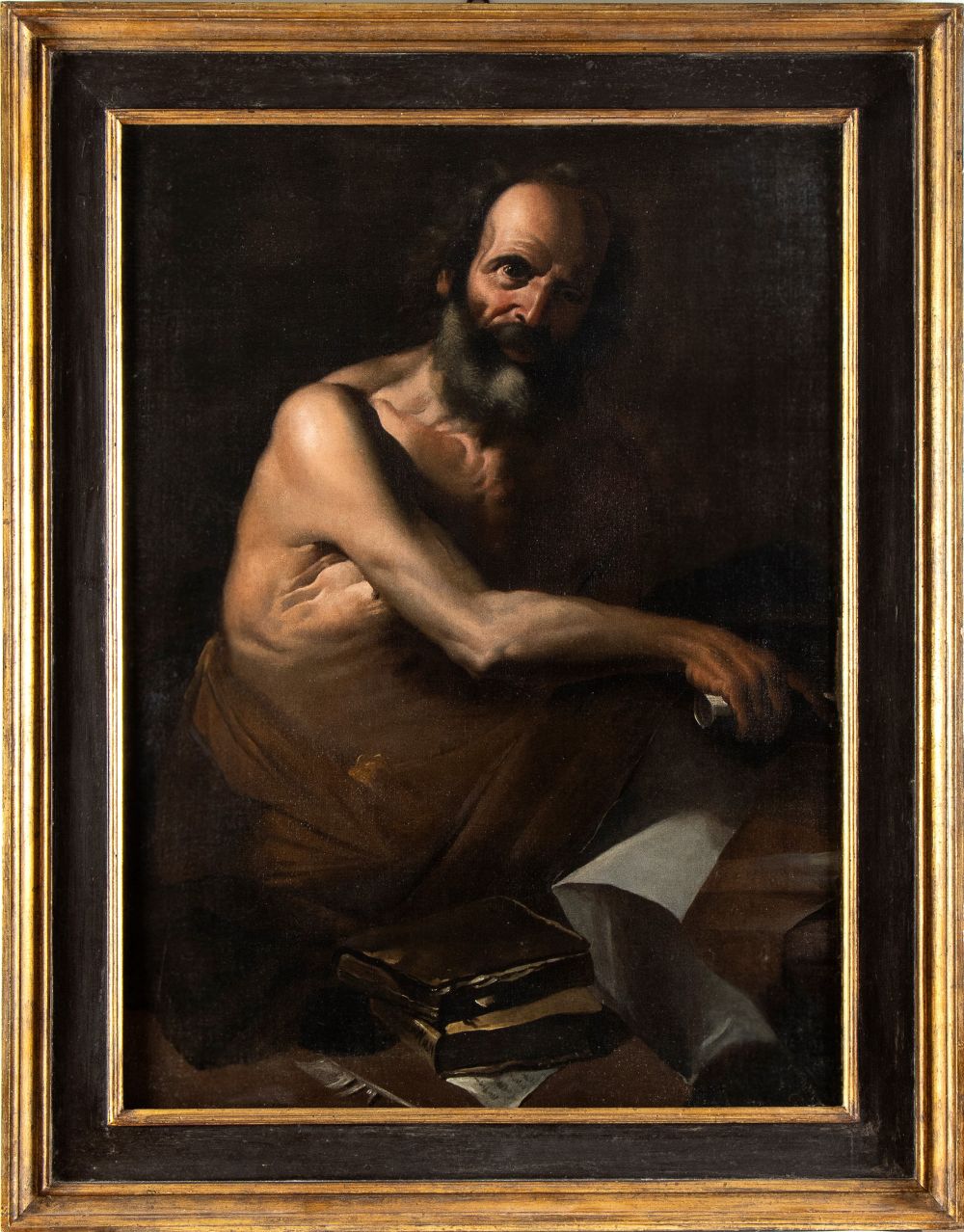 Artista caravaggesco attivo a Napoli, prima metà XVII secolo () Filosofo con...