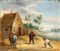 a) Giocatori di bocce in riva al fiume; b) Conversazione fra compaesani. Coppia di dipinti