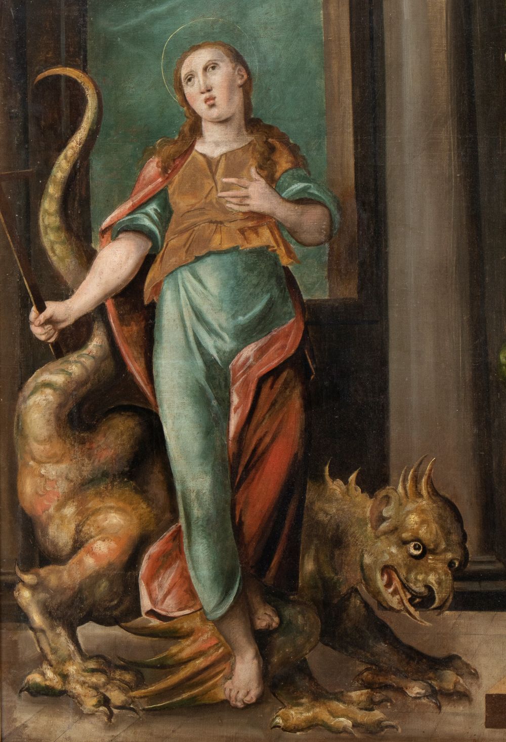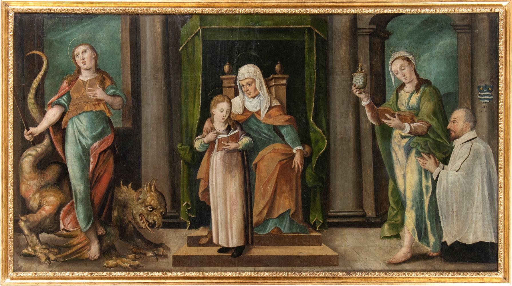 L'educazione della Vergine con Sant'Anna in trono al cospetto di Santa Margherita d'Antiochia, Santa Maddalena e il donatore in abiti talari
