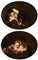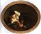 a) Contadinella addormentata con cesto di frutta; b) Due fanciulli che accordano uno strumento musicale. Coppia di dipinti.