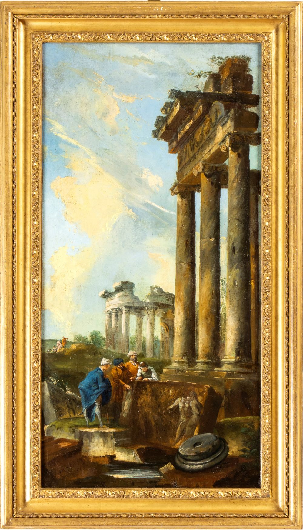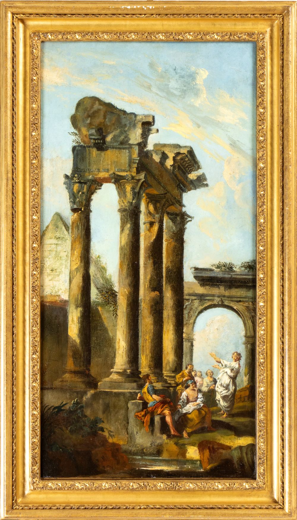 a) Capriccio con monumenti classici e archeologo; b) Capriccio con monumenti classici e predica del Battista. Coppia di dipinti