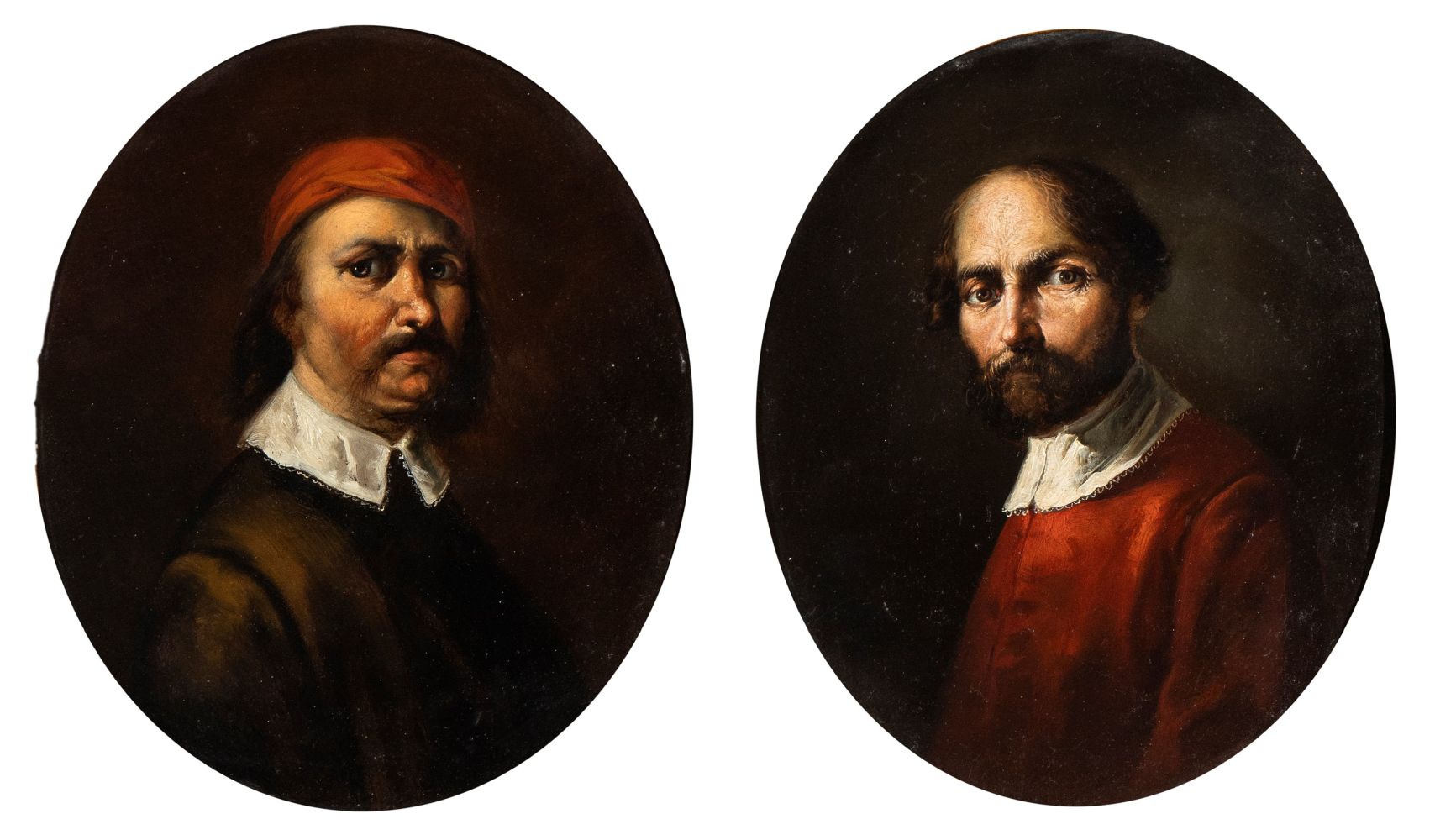 Artista fiammingo, XVII secolo () a) Ritratto virile con cappello rosso; b)...