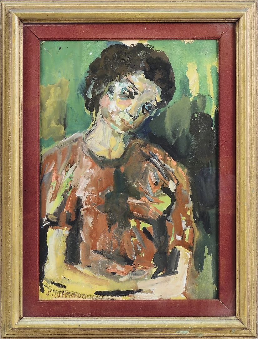 SILVIO LOFFREDO (1920-2013) Ritratto femminile - Female Portrait olio su tavoletta - oil on panel, firmato, in cornice cm 50x35 Corredato dell'autentica dell'autore su fotografia - With Author's authentication on photo