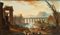 Veduta laziale di fantasia con ruderi, tempio corinzio, tempietto circolare, acquedotto e figure
