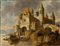 Artista olandese, XVIII - XIX secolo () Paesaggio con imbarcazioni e castello...