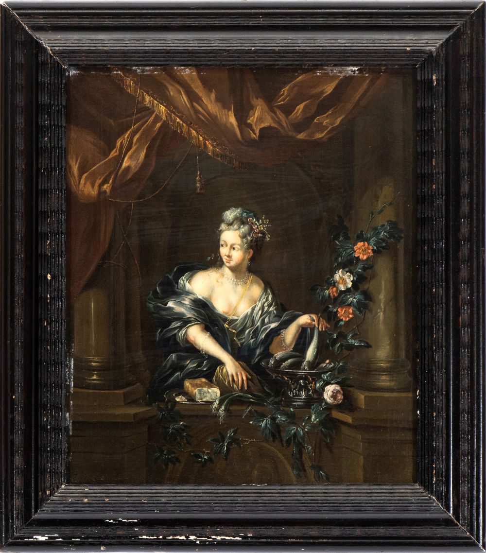 Ritratto di giovane gentildonna con pane, pesci e fiori