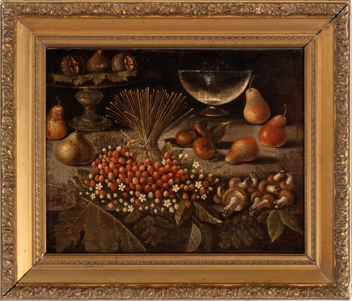 Lotto 291 | Artista lombardo, inizio XVII secolo () Natura morta con fragoline, funghi,...