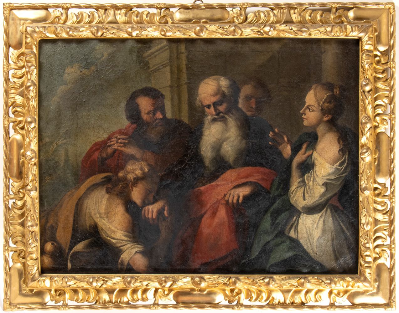 Artista emiliano, XVII secolo () Scena biblica con due donne