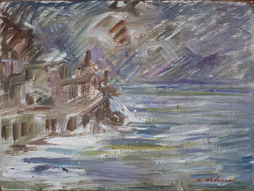 Domenico De Vanna, Olio su compensato, 39,5x29cm, Marina, 1967; Cartiglio sul retro del Professor Domenico De Vanna