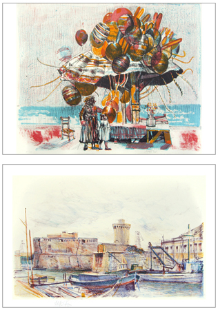 MARIO MADIAI Livorno 1944 Lotto composto da 2 opere: - Senza titolo Litografia a colori es.58/120. Firma in b. a s., timbro a secco Graphis Arte, Livorno in b. a d. (50 x 70 foglio – 35 x 56 ca. lito.) - Senza titolo Litografia a colori es.112/120. Firma in b. a d. + timbro a secco Graphis Arte, Livorno. (50,5 x 70,5 foglio – 49,5 x 62,5 lito.)